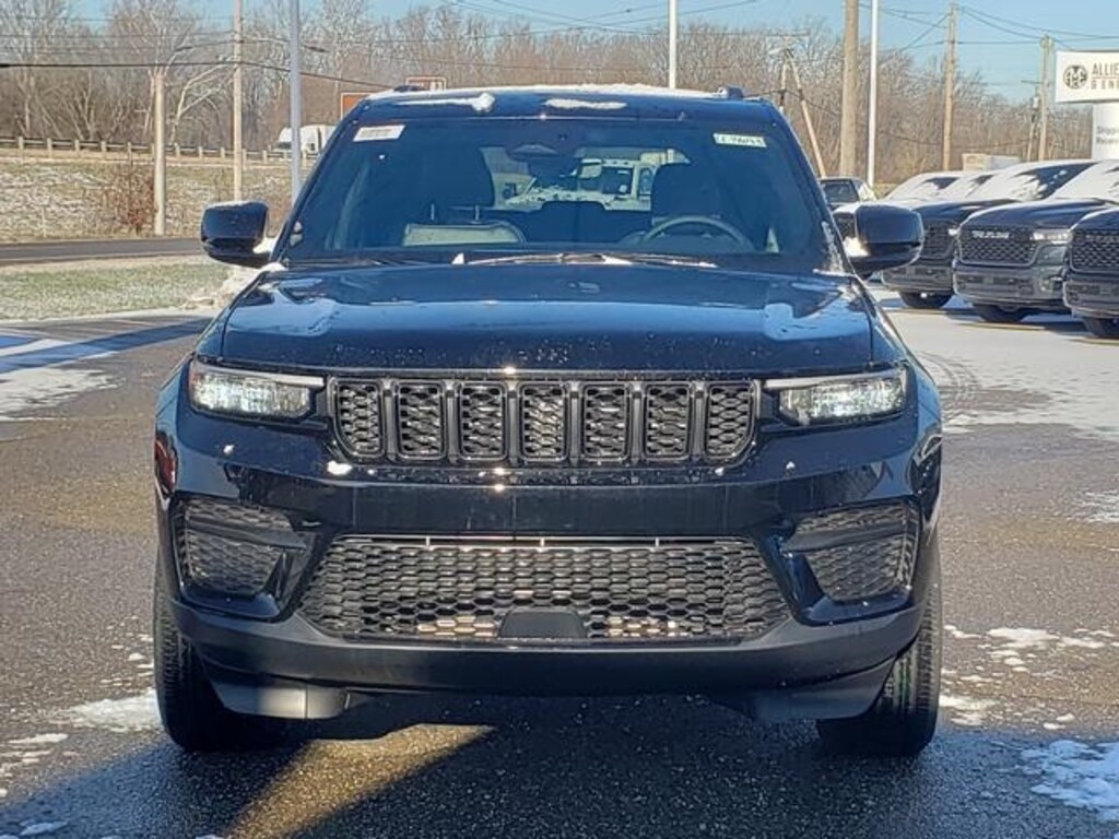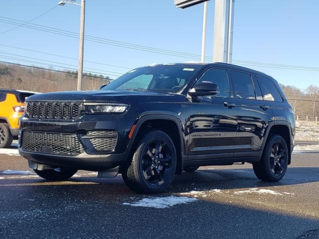 Diamond Black Crystal Pearlcoat 2025 Jeep Grand Cherokee Altitude X 4WD 8-Speed Automatic 3.6L V6 24V VVT 115V Auxiliary Power Outlet, 4-Wheel Disc Brakes, 6 Speakers, ABS brakes, Air Conditioning, Alloy wheels, Altitude X, AM/FM radio: SiriusXM, Anti-whiplash front head restraints, Automatic temperature control, Black Headliner, Brake assist, Bumpers: body-color, Capri Leatherette/Suede Seats, Cloth Seats, Compass, Delay-off headlights, Delete Laredo Badge, Driver door bin, Driver vanity mirror, Dual front impact airbags, Dual front side impact airbags, Electronic Stability Control, Emergency communication system, Four wheel independent suspension, Front anti-roll bar, Front Bucket Seats, Front Center Armrest w/Storage, Front dual zone A/C, Front License Plate Bracket, Front reading lights, Fully automatic headlights, Gloss Black Exterior Accents, Heated door mirrors, Heated Front Seats, Heated Steering Wheel, Illuminated entry, Knee airbag, Low tire pressure warning, Model Year Tracking, MOPAR Finishing Package, MOPAR Front Splash Guards, MOPAR Paint Protection Film, MOPAR Rear Splash Guards with Jeep Logo, Normal Duty Suspension, Occupant sensing airbag, Outside temperature display, Overhead airbag, Overhead console, Panic alarm, ParkView Rear Back-Up Camera, Passenger door bin, Passenger vanity mirror, Power door mirrors, Power driver seat, Power Liftgate, Power steering, Power Sunroof, Power windows, Quick Order Package 23M Altitude X, Radio data system, Radio: Uconnect 5 with 8.4" Display, Rain Sensitive Windshield Wipers, Rear anti-roll bar, Rear reading lights, Rear window defroster, Rear window wiper, Remote keyless entry, Remote Start System, Security system, Selectable Tire Fill Alert, Speed control, Speed-Sensitive Wipers, Split folding rear seat, Spoiler, Steering wheel mounted audio controls, Tachometer, Telescoping steering wheel, Tilt steering wheel, Traction control, Trip computer, Variably intermittent wipers, Voltmeter, Wheels: 17" x 6.5" Fully Painted Aluminum, Wheels: 18" x 8" Fully Painted Aluminum 1, Wheels: 20" x 8.5" Gloss Black Painted Aluminum, Wireless Charging Pad.