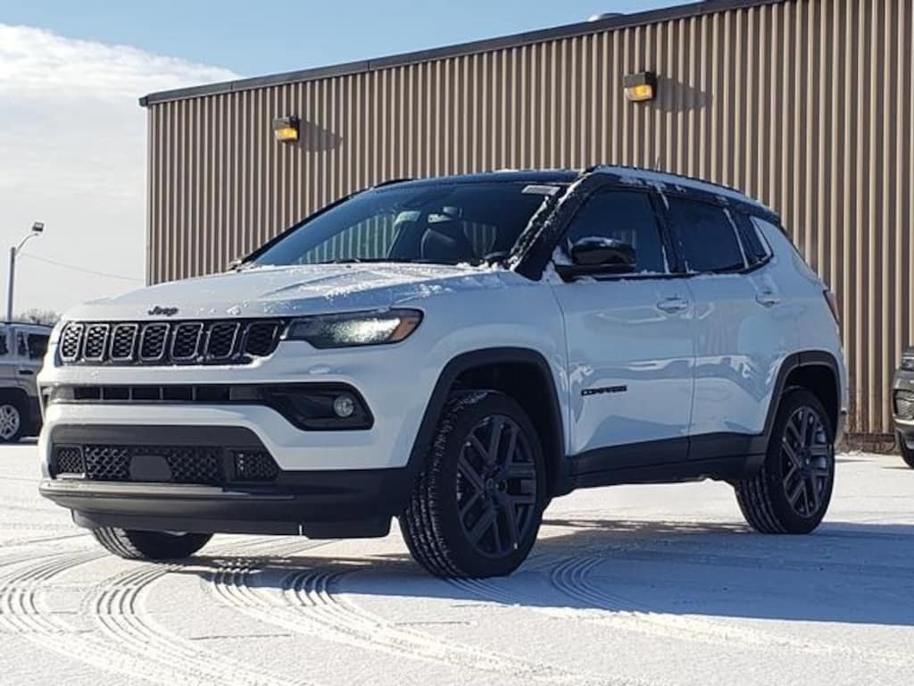 Bright White Clearcoat 2026 Jeep Compass Limited 4WD 8-Speed Automatic 2.0L I4 DOHC 10.1" Touchscreen Display, 3.73 Final Drive Ratio, 4-Wheel Disc Brakes, 4G LTE Wi-Fi Hot Spot, 6 Speakers, ABS brakes, Air Conditioning, Alloy wheels, AM/FM radio: SiriusXM, Auto High-beam Headlights, Auto-dimming Rear-View mirror, Automatic temperature control, Black Day Light Opening Moldings, Brake assist, Bumpers: body-color, Compass, Delay-off headlights, Driver door bin, Driver vanity mirror, Dual front impact airbags, Dual front side impact airbags, Electronic Stability Control, Emergency communication system: SiriusXM Guardian, Four wheel independent suspension, Front anti-roll bar, Front Bucket Seats, Front Center Armrest w/Storage, Front dual zone A/C, Front fog lights, Front License Plate Bracket, Front reading lights, Fully automatic headlights, Global Telematics Box Module, Gloss Black Surround/Neutral Gray Rings, Heated door mirrors, Heated front seats, Heated steering wheel, Illuminated entry, Knee airbag, Leather Shift Knob, Leather steering wheel, Leatherette Seats, Limited Altitude Pack, Low tire pressure warning, MyFlexCare Service Plan, Neutral Gray Exterior Accents, Neutral Gray Exterior Badging, Occupant sensing airbag, Outside temperature display, Overhead airbag, Overhead console, Panic alarm, ParkView Rear Back-Up Camera, Passenger door bin, Passenger vanity mirror, Piano Black Interior Accents, Power door mirrors, Power driver seat, Power Liftgate, Power steering, Power windows, Premium audio system: UConnect 5, Quick Order Package 29W Limited Altitude, Radio: Uconnect 5 with 10.1" Display, Rain sensing wipers, Rear anti-roll bar, Rear seat center armrest, Rear window defroster, Rear window wiper, Remote keyless entry, Security system, SiriusXM Guardian - Included Trail (B), SiriusXM Radio Service, Speed control, Split folding rear seat, Spoiler, Steering wheel mounted audio controls, Tachometer, Telescoping steering wheel, Tilt steering wheel, Traction control, Trip computer, Turn signal indicator mirrors, Variably intermittent wipers, Wheels: 18" x 7" Painted Diamond Cut Aluminum, Wheels: 19" x 7.5" Aluminum Painted.
