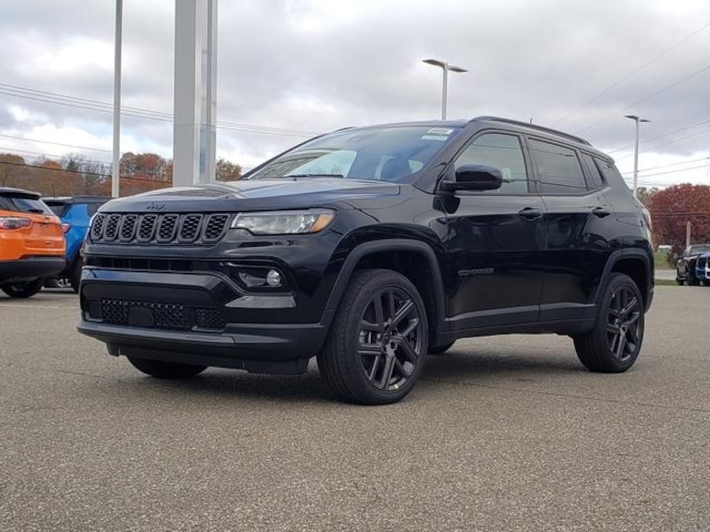 Diamond Black Crystal Pearlcoat 2026 Jeep Compass Limited 4WD 8-Speed Automatic 2.0L I4 DOHC 10.1" Touchscreen Display, 3.73 Final Drive Ratio, 4-Wheel Disc Brakes, 6 Speakers, ABS brakes, Air Conditioning, Alloy wheels, AM/FM radio: SiriusXM, Auto High-beam Headlights, Auto-dimming Rear-View mirror, Automatic temperature control, Black Day Light Opening Moldings, Brake assist, Bumpers: body-color, Compass, Delay-off headlights, Driver door bin, Driver vanity mirror, Dual front impact airbags, Dual front side impact airbags, Electronic Stability Control, Emergency communication system, Four wheel independent suspension, Front anti-roll bar, Front Bucket Seats, Front Center Armrest w/Storage, Front dual zone A/C, Front fog lights, Front License Plate Bracket, Front reading lights, Fully automatic headlights, Gloss Black Surround/Neutral Gray Rings, Heated door mirrors, Heated front seats, Heated steering wheel, Illuminated entry, Knee airbag, Leather Shift Knob, Leather steering wheel, Leatherette Seats, Limited Altitude Pack (DISC), Low tire pressure warning, MOPAR All Weather Package (DISC), MOPAR All-Weather Floor Mats, MOPAR Molded Cargo Tray, MyFlexCare Service Plan, Neutral Gray Exterior Accents, Neutral Gray Exterior Badging, Occupant sensing airbag, Outside temperature display, Overhead airbag, Overhead console, Panic alarm, ParkView Rear Back-Up Camera, Passenger door bin, Passenger vanity mirror, Piano Black Interior Accents, Power door mirrors, Power driver seat, Power Liftgate, Power steering, Power windows, Quick Order Package 29W Limited Altitude, Radio: Uconnect 5 w/10.1" Display, Rain sensing wipers, Rear anti-roll bar, Rear seat center armrest, Rear window defroster, Rear window wiper, Remote keyless entry, Security system, Speed control, Split folding rear seat, Spoiler, Steering wheel mounted audio controls, Tachometer, Telescoping steering wheel, Tilt steering wheel, Traction control, Trip computer, Turn signal indicator mirrors, Variably intermittent wipers, Wheels: 18" x 7" Painted Diamond Cut Aluminum, Wheels: 19" x 7.5" Aluminum Painted.