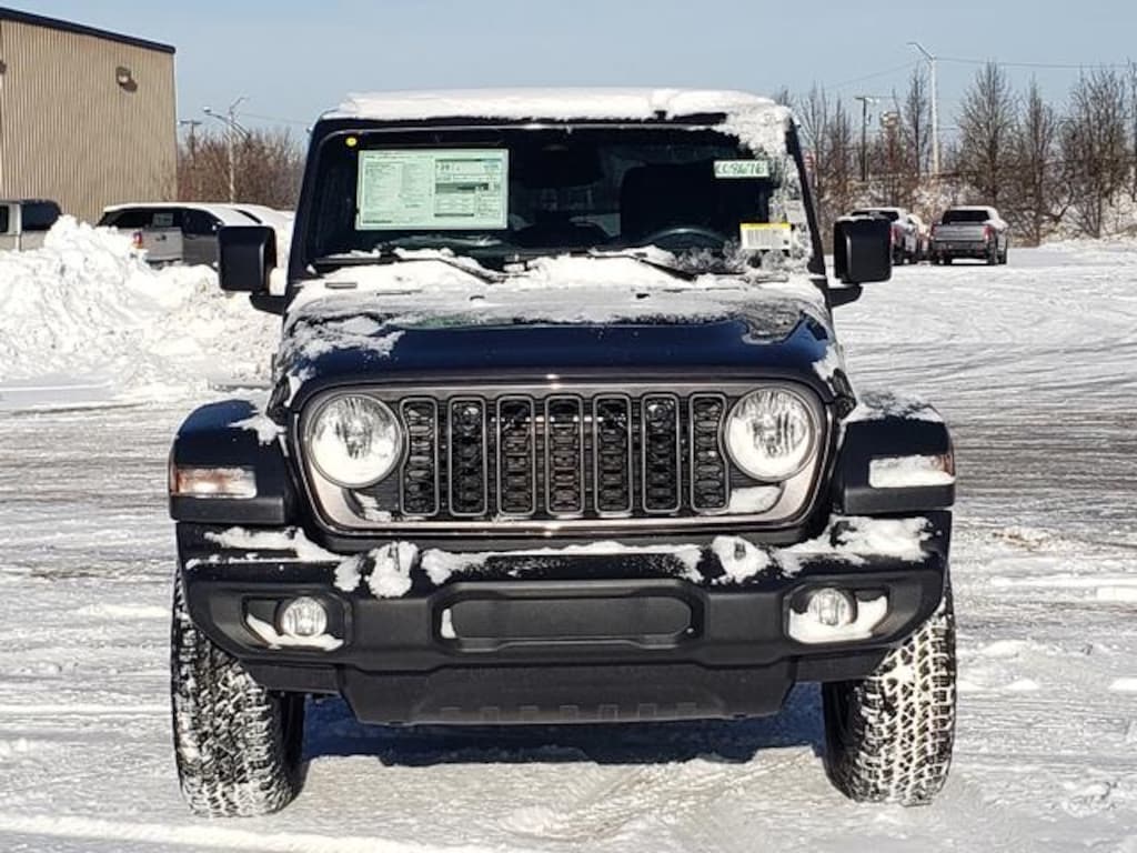 granite crystal metallic clearcoat 2026 Jeep Wrangler Sport S 4WD 8-Speed Automatic 3.6L V6 24V VVT 12.3" Touchscreen Display, 2-Door Passive Entry, Front Door Locks, 3.45 Overall Top Gear Ratio, 4-Wheel Disc Brakes, 4G LTE Wi-Fi Hot Spot, 7 and 4 Pin Wiring Harness, 8 Speakers, ABS brakes, Advanced Brake Assist, Air Conditioning, Air Conditioning with Auto Temp Control, Air Filtering, AM/FM radio: SiriusXM with 360L, Apple CarPlay, Apple CarPlay/Android Auto, Automatic Headlamps, Aux Battery, Auxiliary Switches, Black 3-Piece Hard Top, Brake assist, Class II Receiver Hitch, Cluster 7.0" TFT Color Display, Compass, Connectivity - US/Canada, Convenience Group, Corning Gorilla Glass, Deep Tint Sunscreen Windows, Delay-off headlights, Driver door bin, Driver vanity mirror, Dual front impact airbags, Dual front side impact airbags, Electronic Stability Control, Emergency/Assistance Call, Enhanced Adaptive Cruise Control, For More Info, Call 800-643-2112, Freedom Panel Storage Bag, Front anti-roll bar, Front Bucket Seats, Front Center Armrest w/Storage, Front fog lights, Front reading lights, Full Speed Forward Collision Warning Plus, Google Android Auto, Heated Front Seats, Heated Steering Wheel, Illuminated entry, Integrated Center Stack Radio, Integrated roll-over protection, Low tire pressure warning, Manufacture Statement of Origin, MOPAR All-Weather Floor Mats, Mopar Black Tubular Side Steps, Myflexcare Service Plan, No Soft Top, Non-Lock Fuel Cap Without Discriminator, Normal Duty Suspension, Occupant sensing airbag, Outside temperature display, Overhead airbag, Panic alarm, ParkView Rear Back-Up Camera, Passenger door bin, Passenger vanity mirror, Power Heated Mirrors, Power steering, Power windows, Premium Wrapped Steering Wheel, Quick Order Package 24S Sport S, Radio data system, Radio: Uconnect 5 with 12.3" Display, Rear anti-roll bar, Rear reading lights, Rear Window Defroster, Rear Window Wiper/Washer, Remote keyless entry, Security Alarm, SiriusXM Radio Service, SiriusXM with 360L, Speed control, Split folding rear seat, Steering wheel mounted audio controls, Stop-Start Dual Battery System, Sun Visors with Illuminated Vanity Mirrors, Tachometer, Telescoping steering wheel, Tilt steering wheel, Traction control, Trailer Tow and Auxiliary Switch Group, Trip computer, Universal Garage Door Opener, Variably intermittent wipers, Wheels: 17" x 7.5" Black Steel Styled, Wheels: 17" x 7.5" Gray.