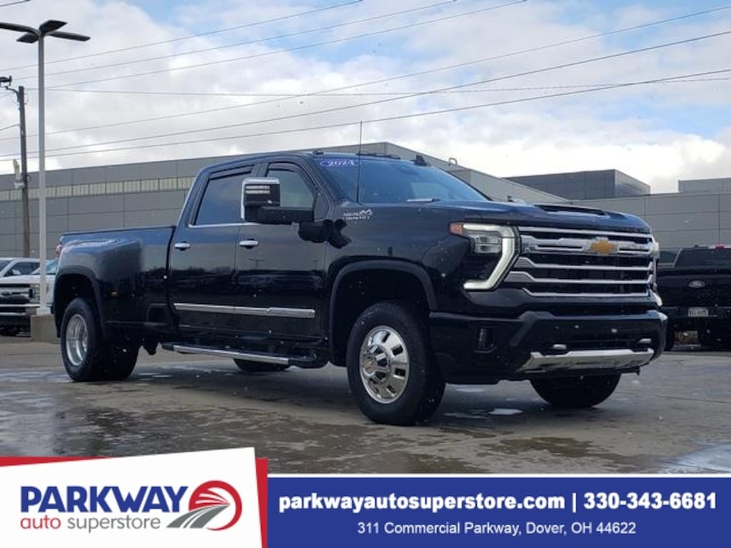 One owner, Local trade in, 10-Way Power Driver Seat Adjuster w/Lumbar, 10-Way Power Passenger Seat Adjuster w/Lumbar, 18" Polished Forged Aluminum Wheels, 3.42 Rear Axle Ratio, Apple CarPlay/Android Auto, Bose Premium 7-Speaker Sound System, Chevytec Spray-On Black Bedliner, Dual rear wheels, EZ Lift Power Lock & Release Tailgate, Fully automatic headlights, Gooseneck/5th Wheel Prep Package, Heated Driver & Front Outboard Passenger Seats, Heated rear seats, Heated Steering Wheel, Hitch Guidance w/Hitch View, In-Vehicle Trailering App System, OnStar & Chevrolet Connected Services Capable, Power passenger seat, Power Sunroof, Preferred Equipment Group 3LZ, Premium audio system: Chevrolet Infotainment 3 Premium, Rain sensing wipers, Suspension Package, Technology Package, Ventilated Driver & Front Passenger Seats, Wired Auxiliary Trailer Camera (LPO), 120-Volt Bed Mounted Power Outlet, 120-Volt Interior Power Outlet, 170 Amp Alternator, 220 Amp Alternator, 4-Wheel Disc Brakes, 6" Rectangular Chromed Tubular Assist Steps, 7 Speakers, ABS brakes, Adaptive Cruise Control, Air Conditioning, Alloy wheels, AM/FM radio: SiriusXM with 360L, Auto High-beam Headlights, Auto-dimming door mirrors, Auto-Dimming Inside Rear-View Mirror, Auto-Dimming Inside Rearview Mirror w/Camera, Auto-dimming Rear-View mirror, Automatic temperature control, Bed View Camera w/2 Trailer Camera Provisions, Bluetooth® For Phone, Bodyside moldings, Brake assist, Bumpers: body-color, Chevrolet Connected Access Capable, Chrome Door Handles, Chrome Mirror Caps, Color-Keyed Carpeting Floor Covering, Compass, Compass Located In Instrument Cluster, Deep-Tinted Glass, Delay-off headlights, Driver door bin, Driver Memory, Driver vanity mirror, Dual front impact airbags, Dual front side impact airbags, Durabed Pickup Bed, Electric Rear-Window Defogger, Electronic Stability Control, Engine Block Heater, Exhaust Brake, Floor-Mounted Center Console, Front anti-roll bar, Front Bucket Seats, Front Carpeted Floor Mats, Front Center Armrest, Front Chrome Recovery Hooks, Front dual zone A/C, Front fog lights, Front LED Fog Lamps, Front Rain-Sensing Wipers, Front reading lights, Front wheel independent suspension, Garage door transmitter, Genuine wood console insert, Genuine wood dashboard insert, Genuine wood door panel insert, Heated 2nd Row Outboard Seats, Heated door mirrors, Heated front seats, Heated steering wheel, Heavy-Duty 80 Amp-Hr Battery, Illuminated entry, Keyless Open & Start, LED Cargo Area Lighting, Low tire pressure warning, Manual Tilt-Wheel/Telescoping Steering Column, Memory seat, Multi-Flex Tailgate, Multicolor 15" Diagonal Head-Up Display, Occupant sensing airbag, Outside temperature display, Overhead airbag, Overhead console, Panic alarm, Passenger door bin, Passenger vanity mirror, Perforated Leather Seating Surfaces, Polished Exhaust Tip, Power Door Locks, Power door mirrors, Power driver seat, Power Front Windows w/Driver Express Up/Down, Power Front Windows w/Passenger Express Up/Down, Power Rear Windows w/Express Down, Power Sliding Rear Window w/Defogger, Power steering, Power Tailgate, Power windows, Push Button Start, Radio: Chevrolet Infotainment 3 Premium System, Rear Carpeted Floor Mats, Rear Cross Traffic Alert, Rear reading lights, Rear seat center armrest, Rear step bumper, Rear window defroster, Remote keyless entry, Remote Vehicle Starter System, Security system, SiriusXM w/360L, Speed control, Speed-sensing steering, Split folding rear seat, Standard Tailgate, Steering Wheel Audio Controls, Steering wheel mounted aud